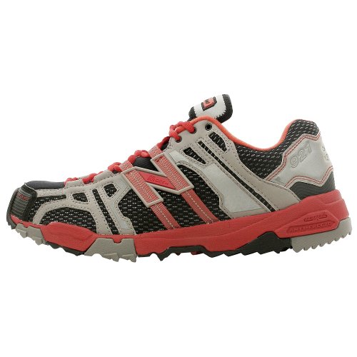 The New Balance 921 is an all-terrain winter running shoe designed with removable ice spikes for the athlete that needs to train year round. It features a Bioshield weather protection material, a tongue pouch to protect laces, rock and ice protection around the toe and forefoot, and 360 degree reflectivity for safety. Colors: Black + Red + Grey